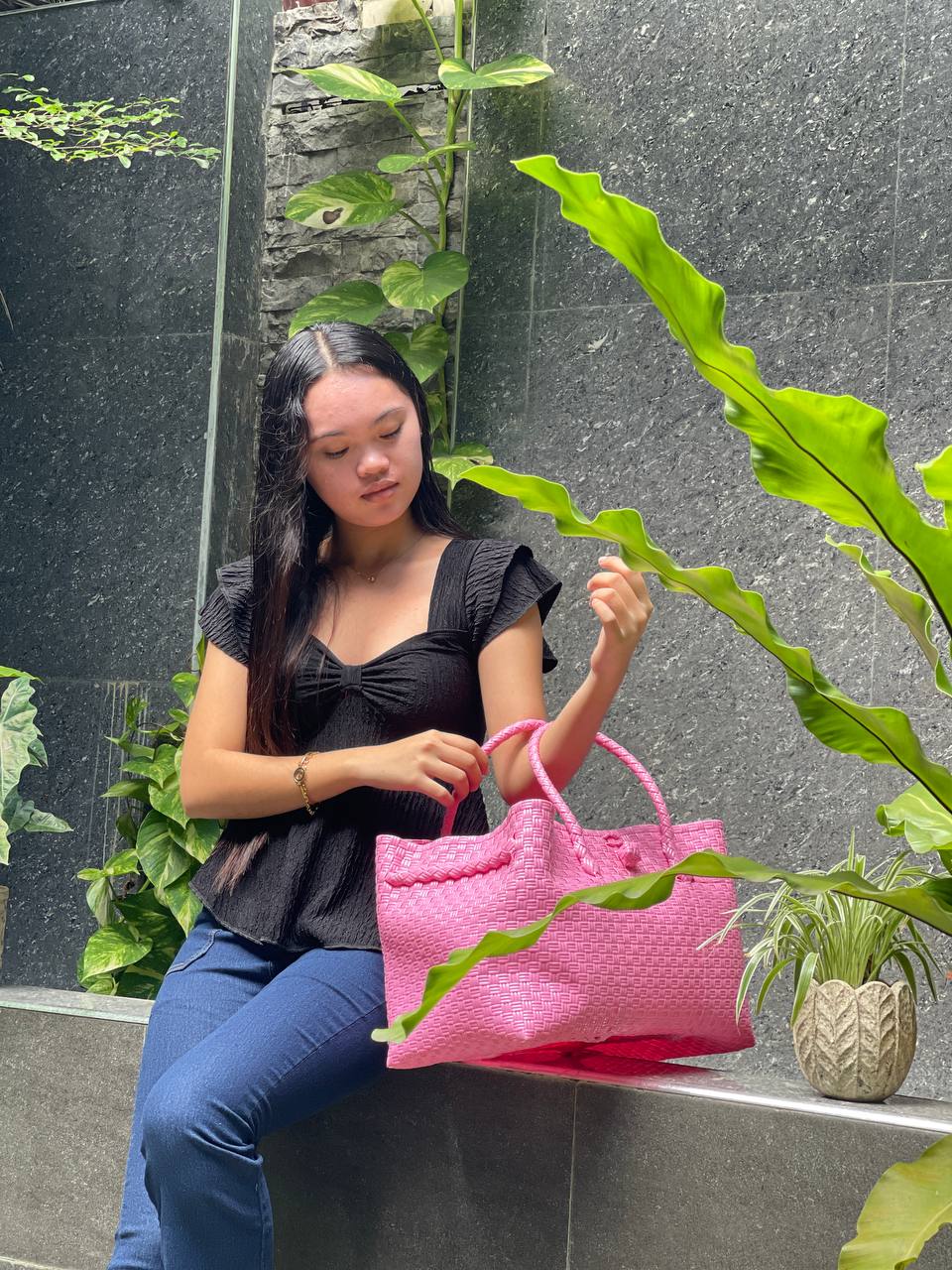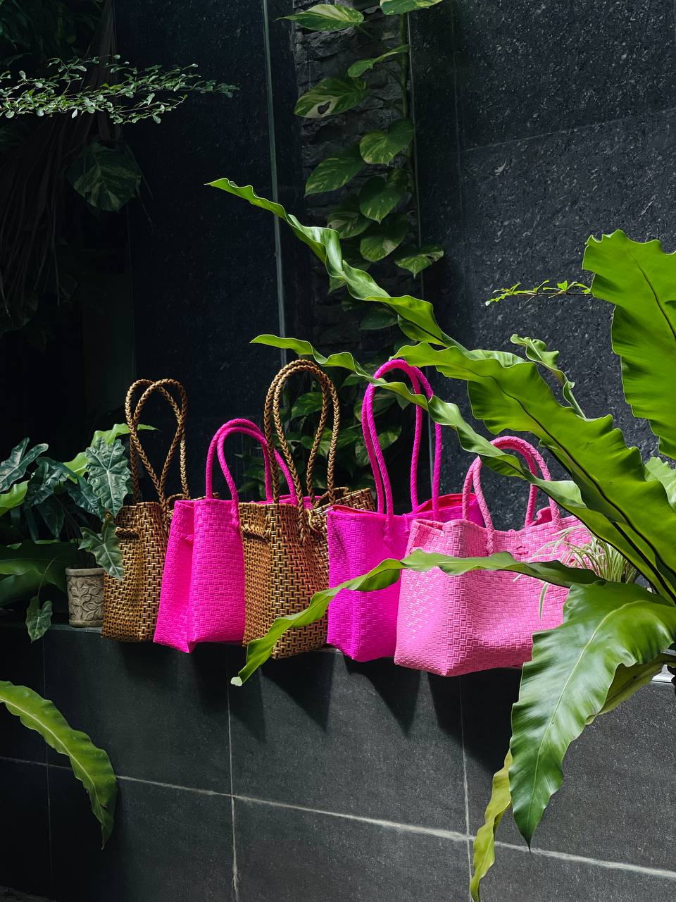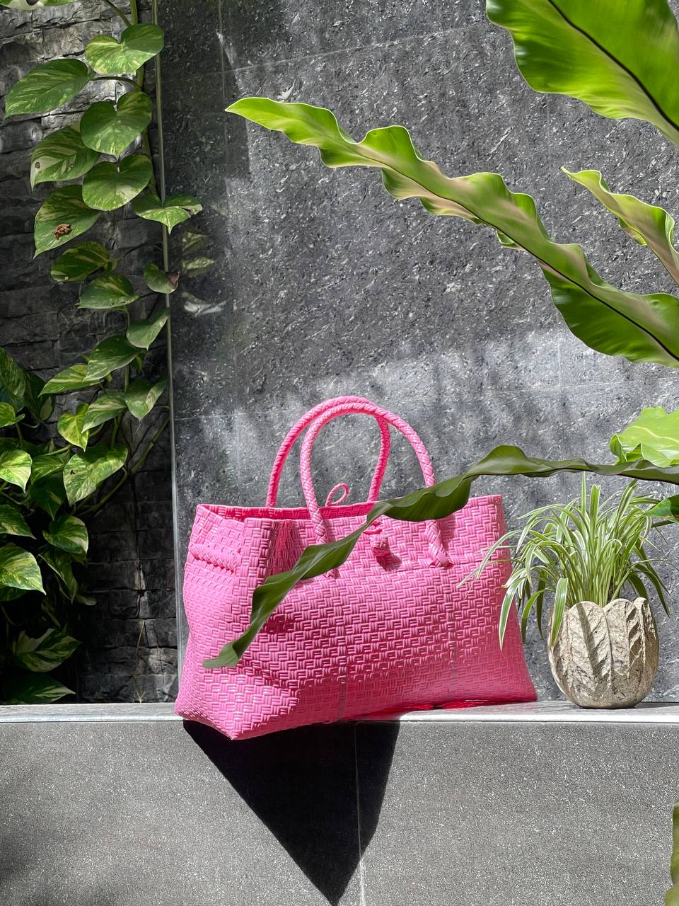 Handwoven from recycled plastic, is lightweight, waterproof, and built to last. Whether you’re heading to the beach, the farmer’s market, or brunch with the girls, this bag adds joy to your journey.