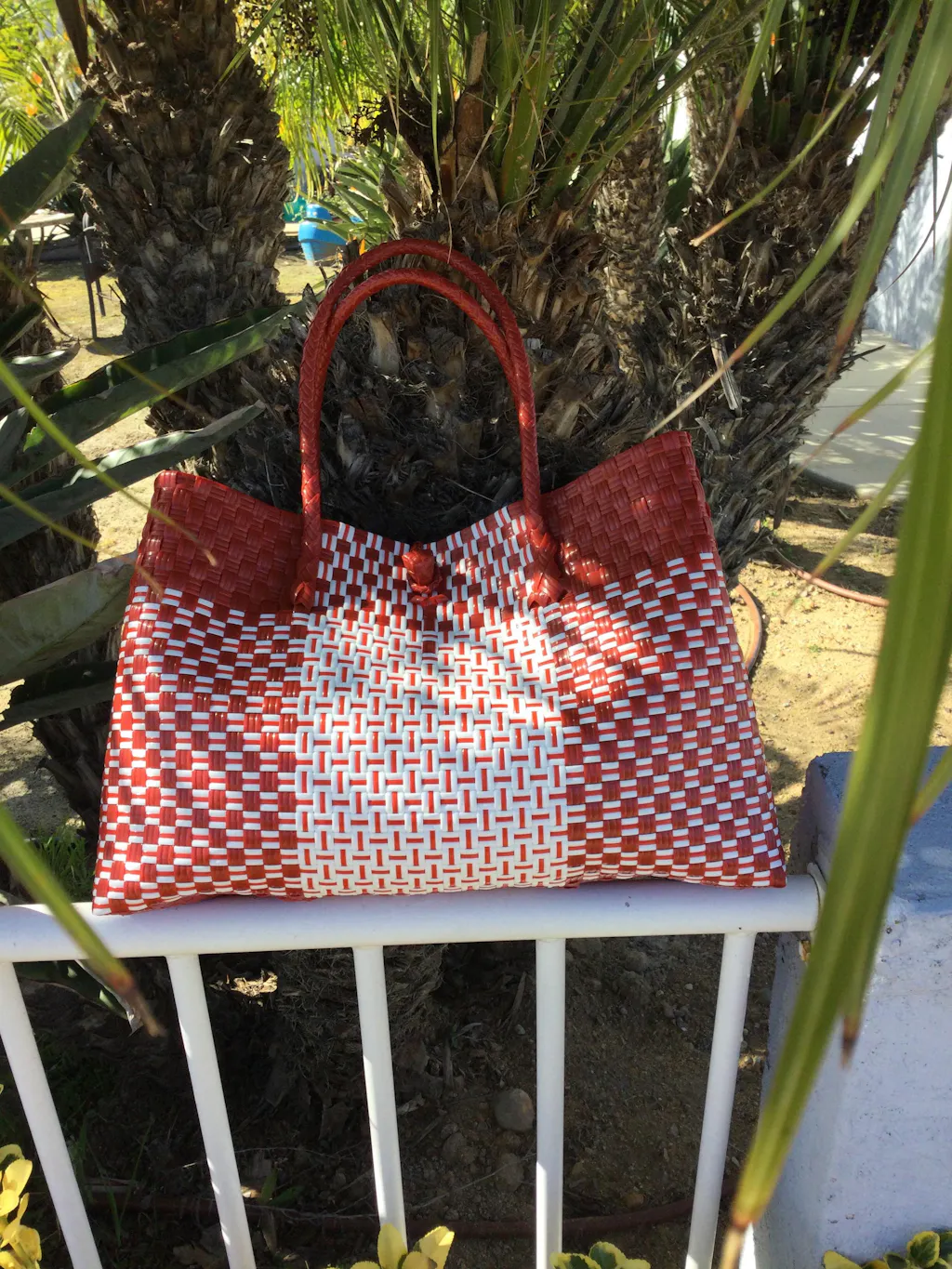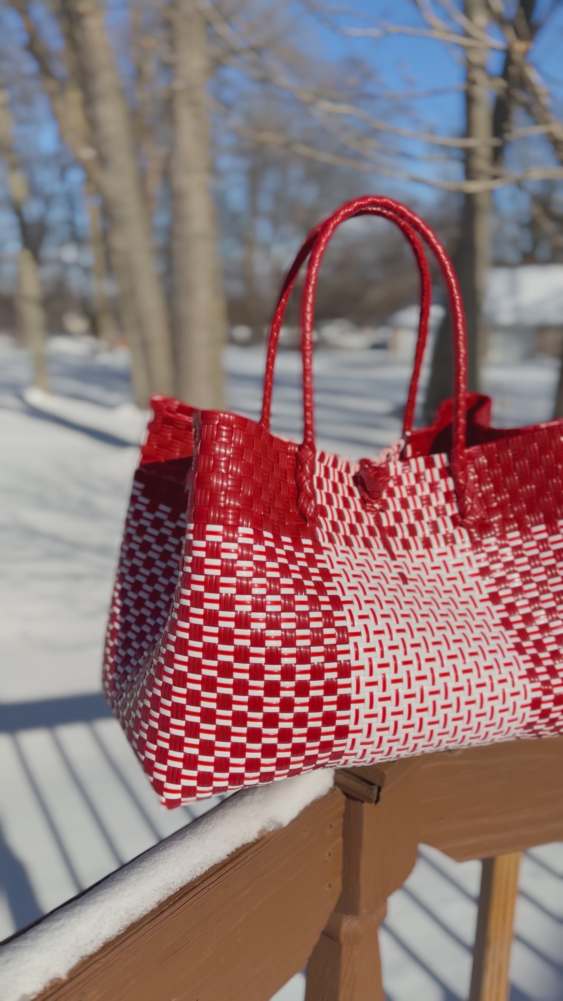 • Handwoven from recycled plastic