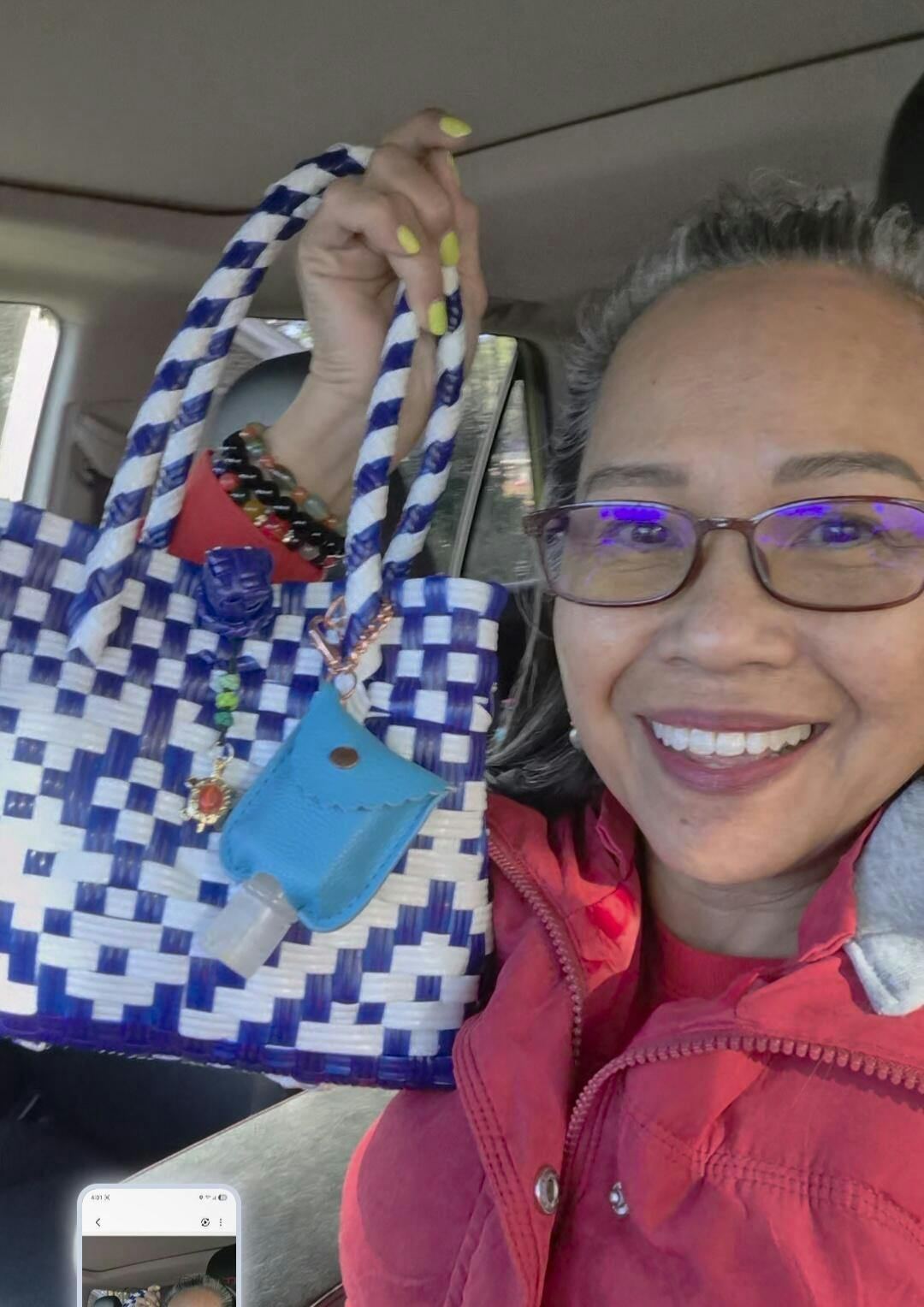 - Handwoven from recycled plastic