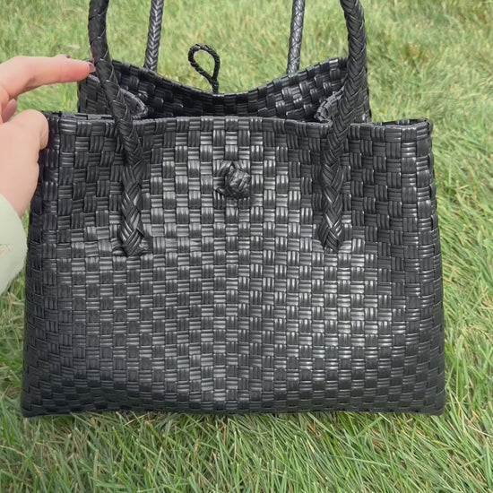 The Blackout Luxe | Handwoven Recycled Tote (Waterproof & Durable)
