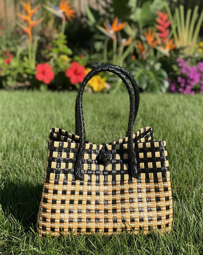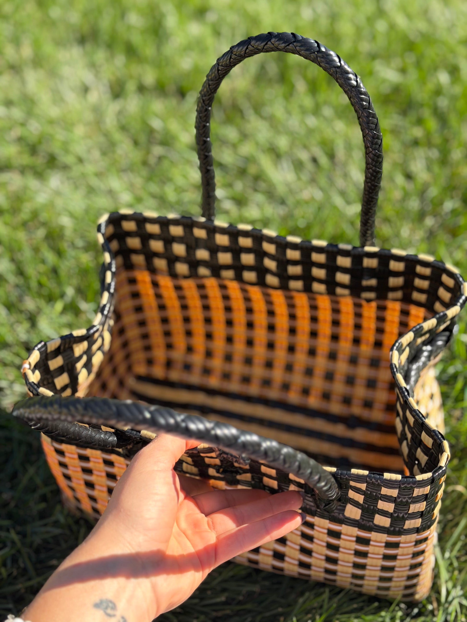Handwoven from recycled plastic, is lightweight, waterproof, and built to last. Whether you’re heading to the beach, the farmer’s market, or brunch with the girls, this bag adds joy to your journey.